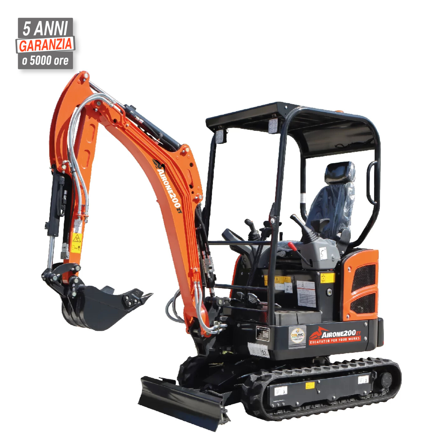 Abbiamo concepito il mini escavatore 20 quintali AIRONE 200 con alcune priorità: una eccellente profondità di scavo ed un ampio raggio di lavoro, priorità richiesta su mini escavatori della categoria 20 quintali.