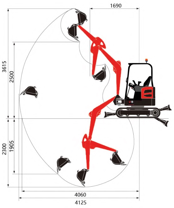 Essa offre una eccellente capacità di sollevamento e forza di scavo, caratteristiche di confort e di sicurezza ed una grande facilità di manutenzione e di trasporto. Il montaggio rapido delle benne, del martello demolitore e dei numerosi accessori agevola il lavoro dell’operatore. E, nonostante sia una macchina girosagoma, cioè senza sporgenza posteriore, riesce a soddisfare tutte le esigenze così come una macchina tradizionale.
